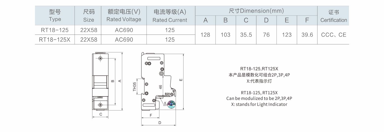◎额定电压 :AC690V◎额定电流 :125A◎符合标准及规范:GB/T 13539.2、IEC60269-2